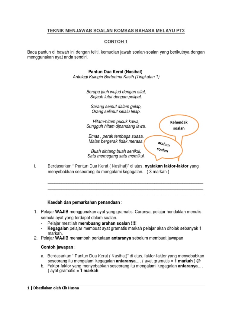 Komponen sastera dan novel BM bahasa melayu. Sekolah Pantun 4 Kerat Nasihat - Soalan Tingkatan 1 Pdf. Walaupun jasad hancur dikandung tanah budi yang baik kan tetap dikenang selamanya.